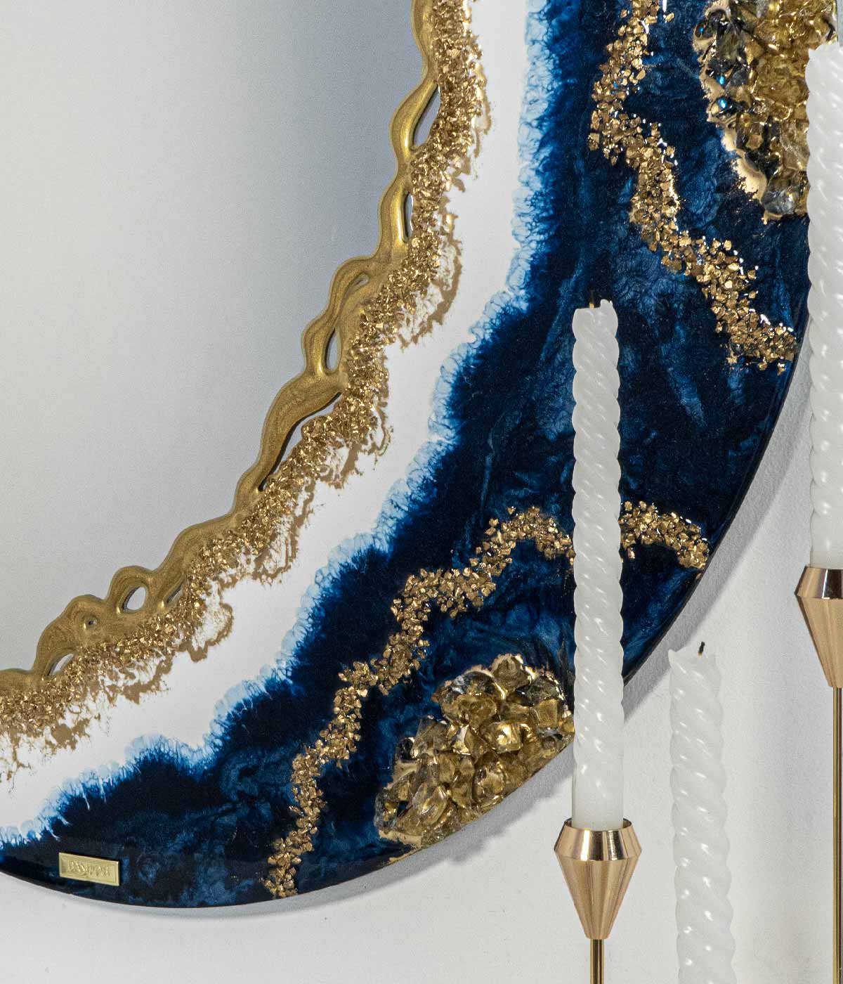 Espejo redondo Greta White Gold piedras