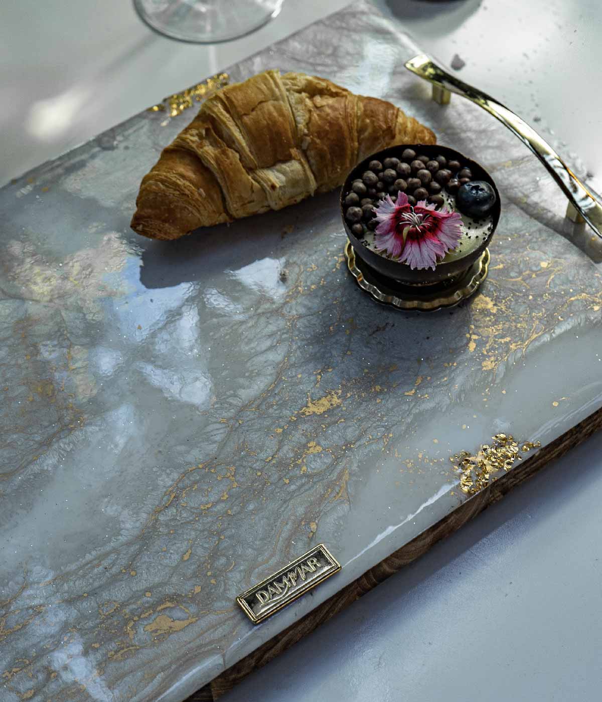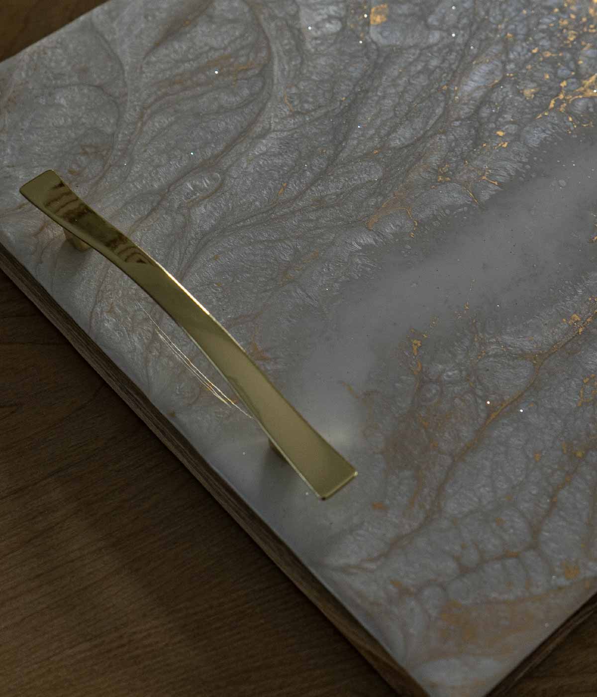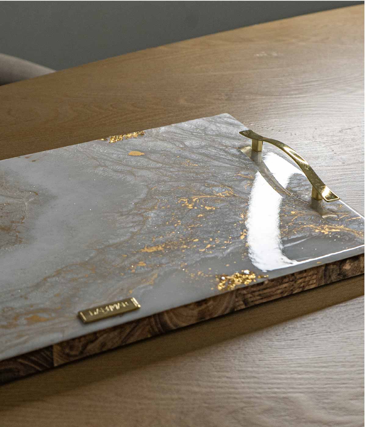 La Bandeja Rio combina elegancia y funcionalidad con un diseño minimalista y atemporal. Sus suaves tonos blancos y nacar, complementados por sutiles detalles dorados, la convierten en el complemento perfecto para cualquier estilo de decoración. Hecha con una robusta base de madera teca, garantiza durabilidad y resistencia, mientras que su diseño impecable eleva la presentación de tus comidas, haciendo que cada plato luzca exquisito.
