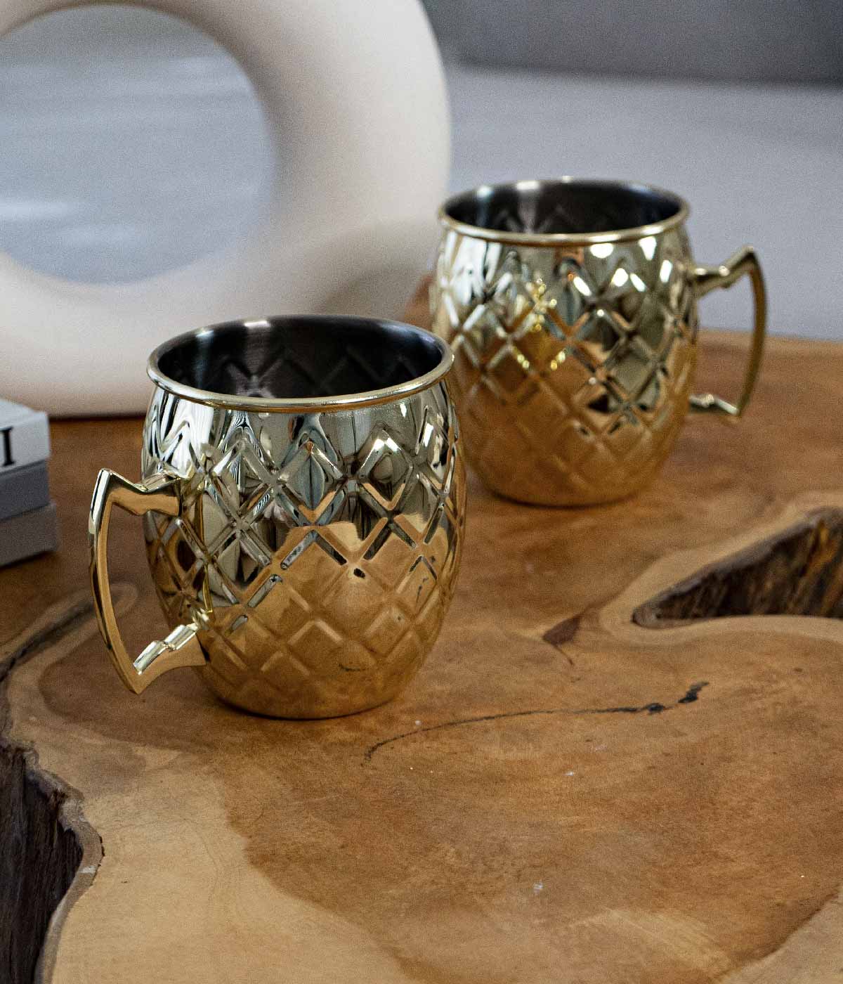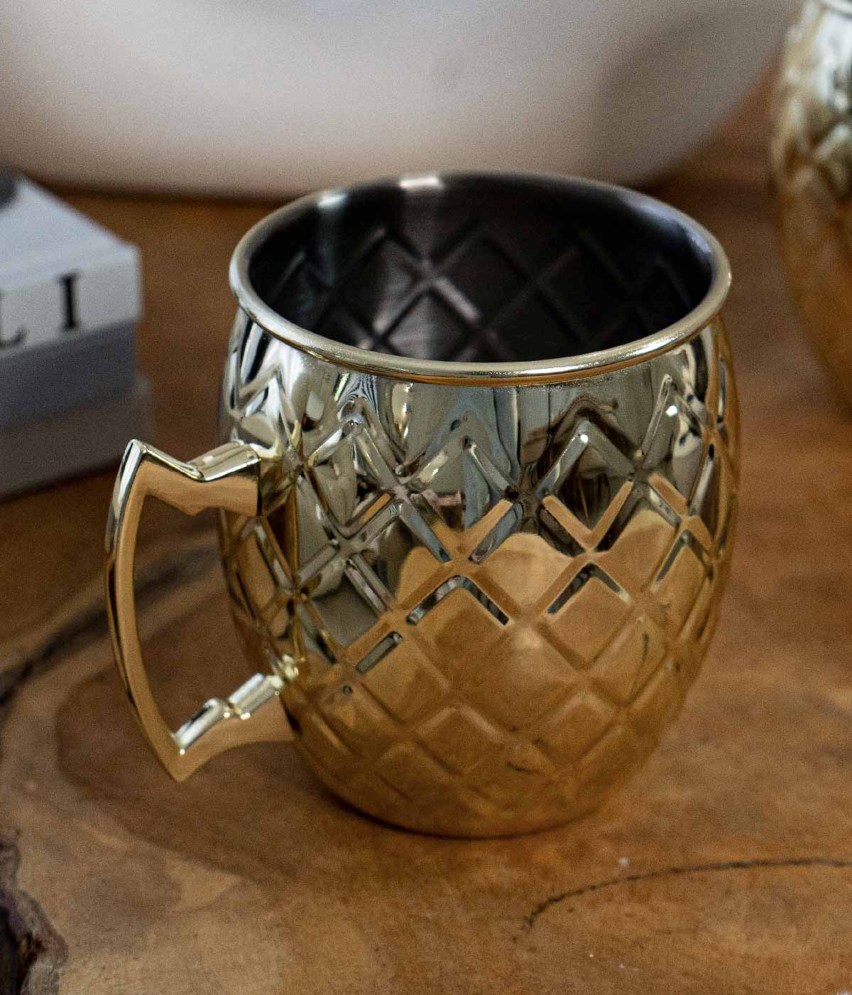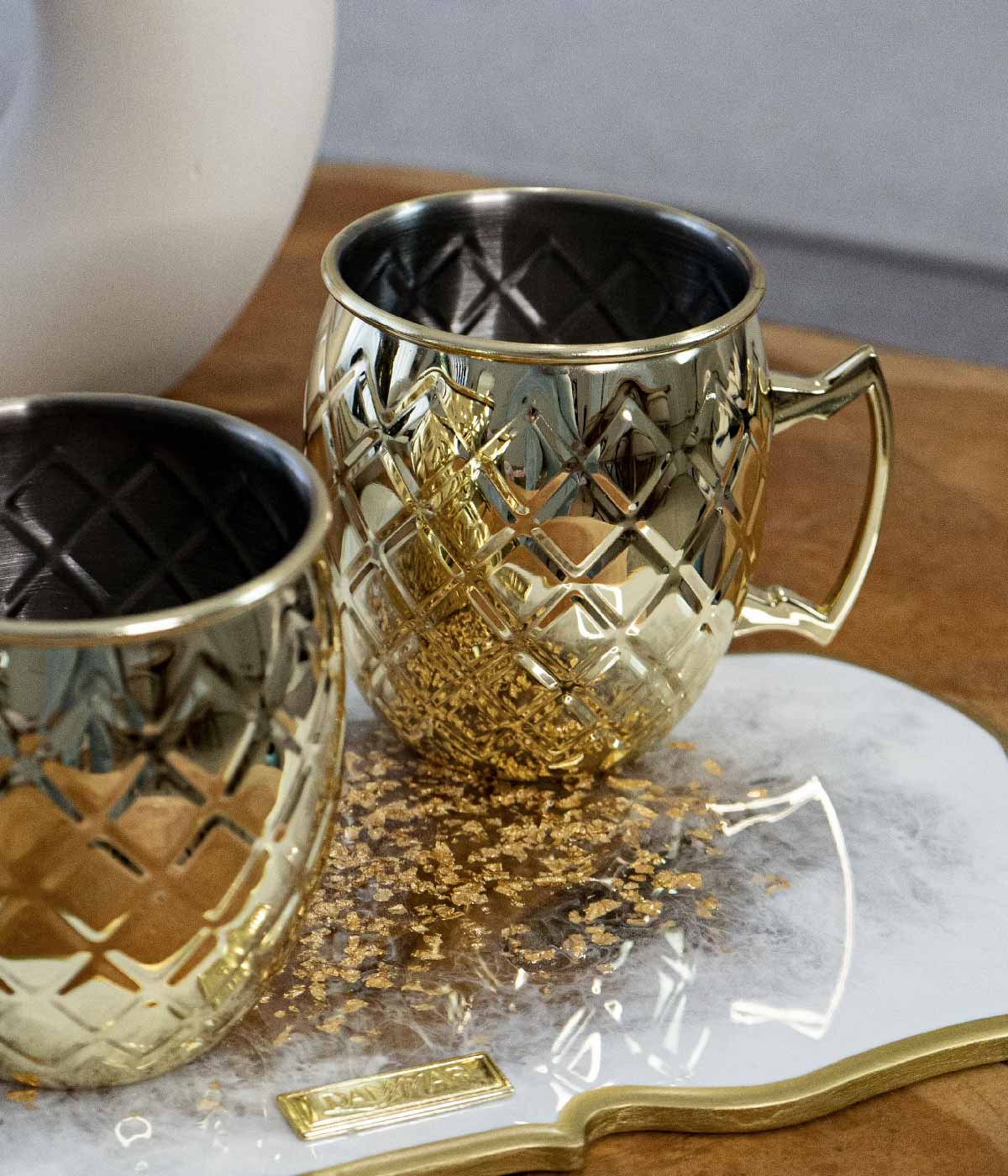 Vaso Moscow dorado, ideal para disfrutar de tus bebidas favoritas con un toque de sofisticación. Su diseño artesanal resalta la belleza del cobre, asegurando durabilidad y estilo en cada sorbo.
