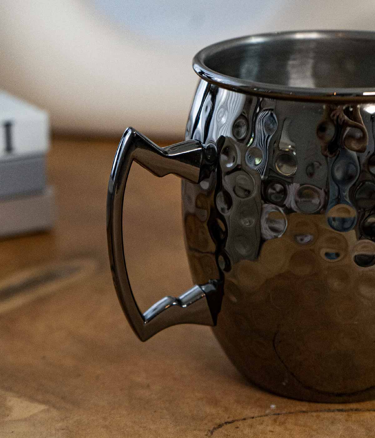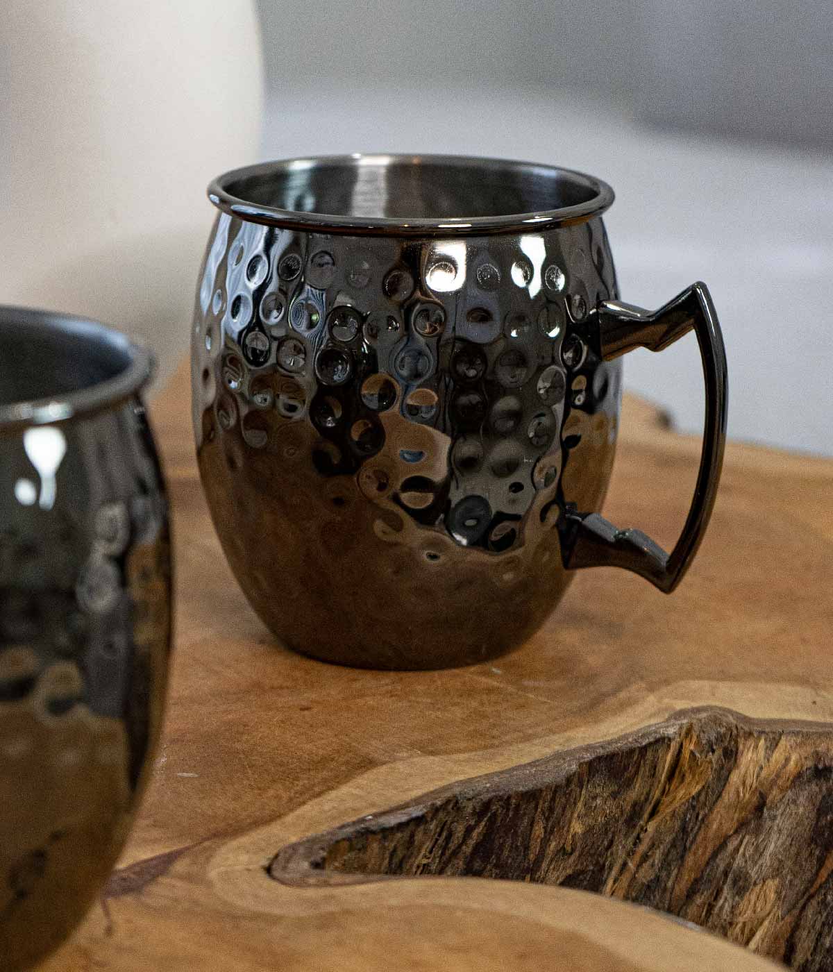 Vaso Moscow humo, ideal para disfrutar de tus bebidas favoritas con un toque de sofisticación. Su diseño artesanal resalta la belleza del cobre, asegurando durabilidad y estilo en cada sorbo.