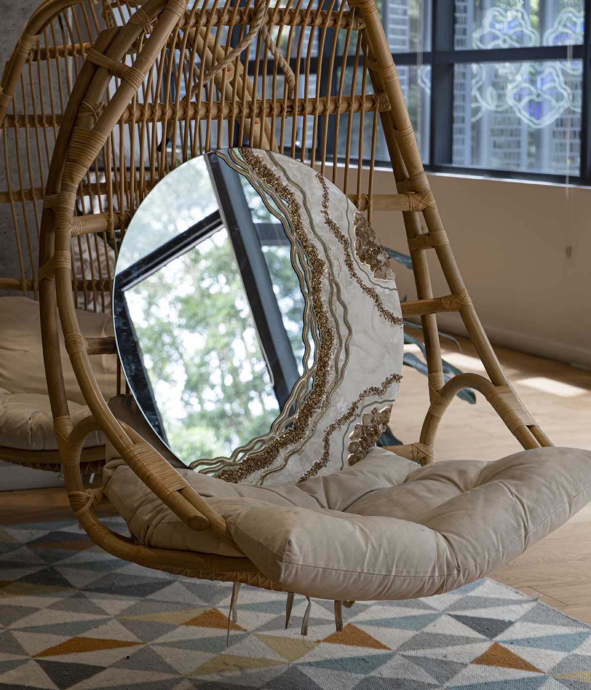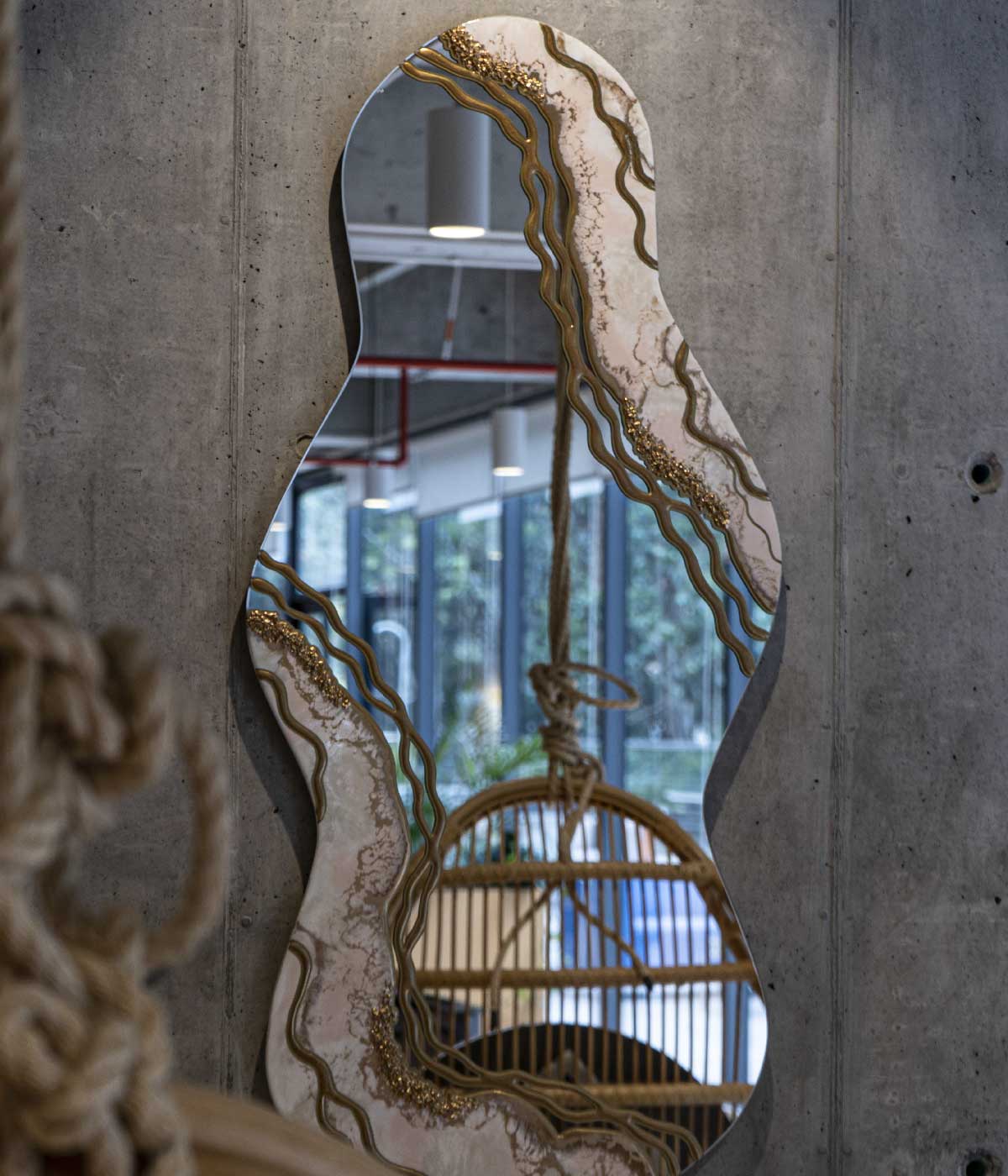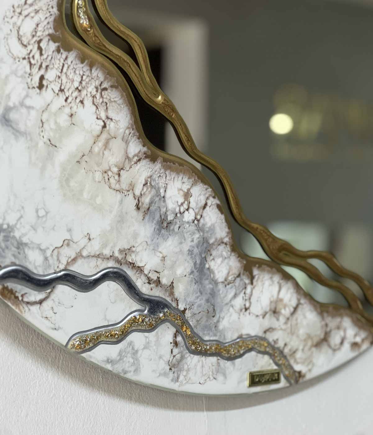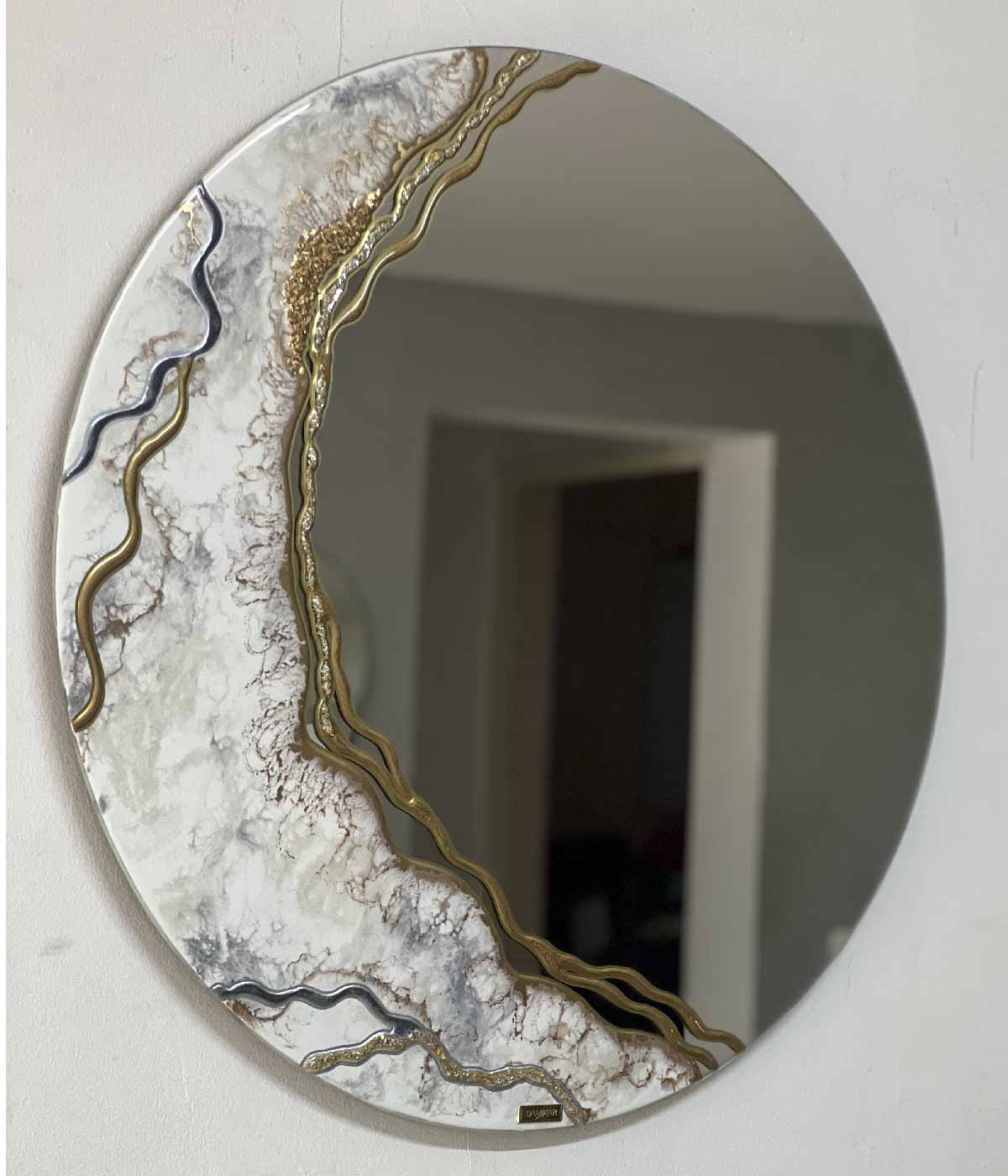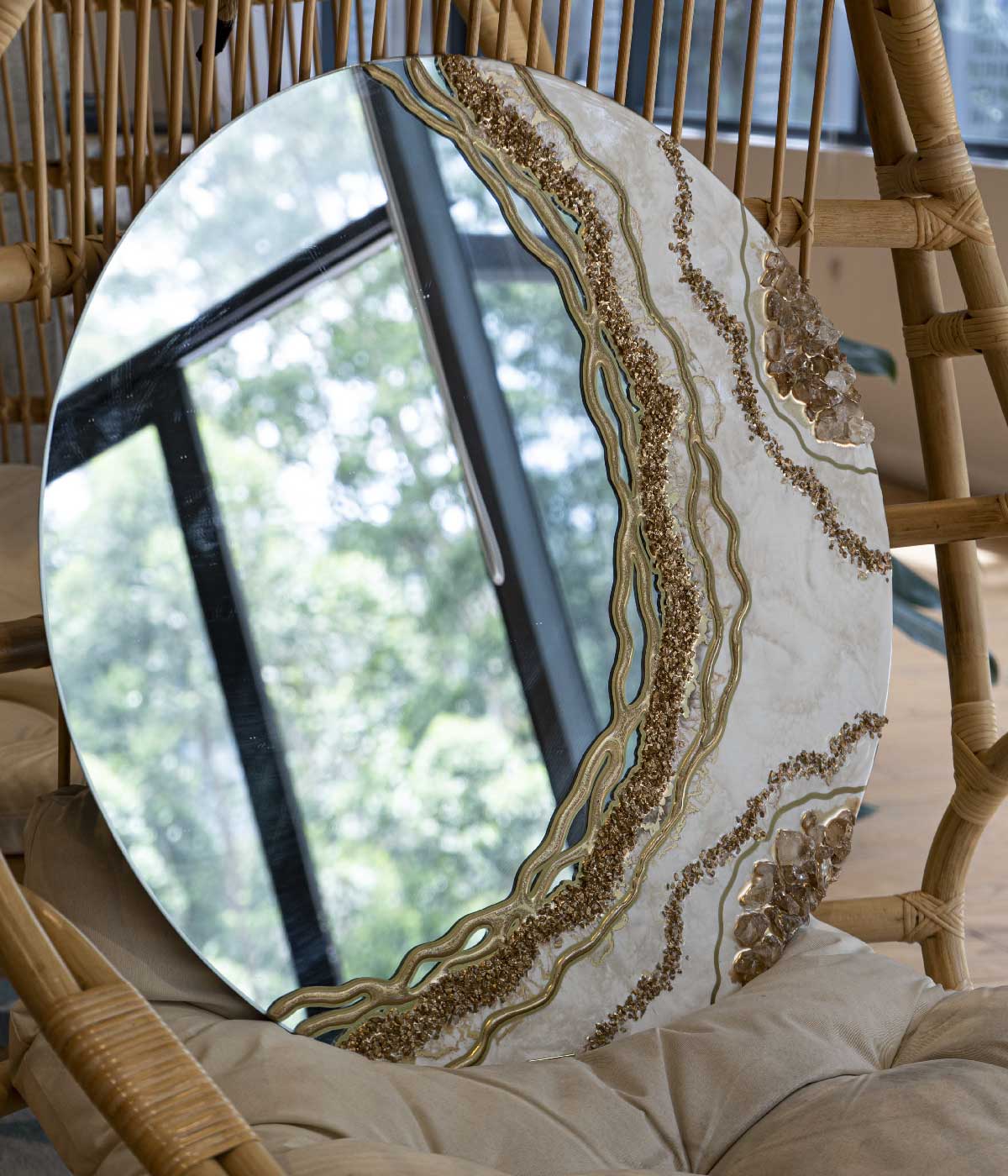 Añadir Espejo redondo Greta White Gold piedras al carrito