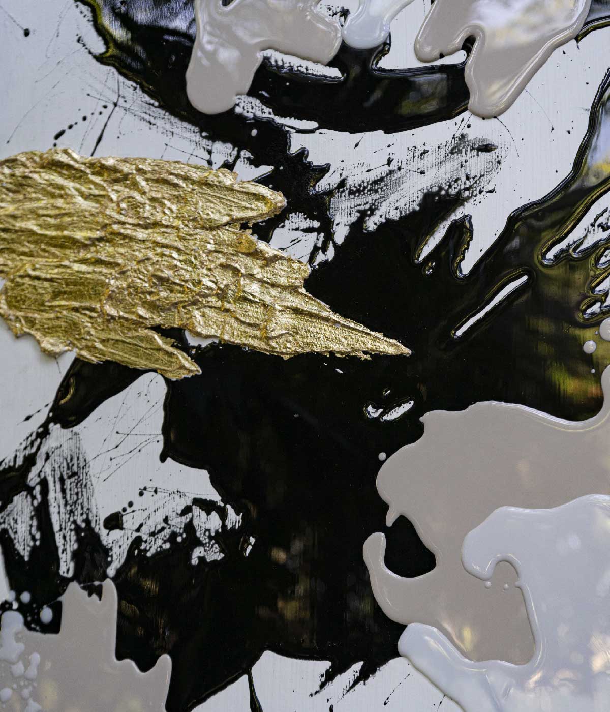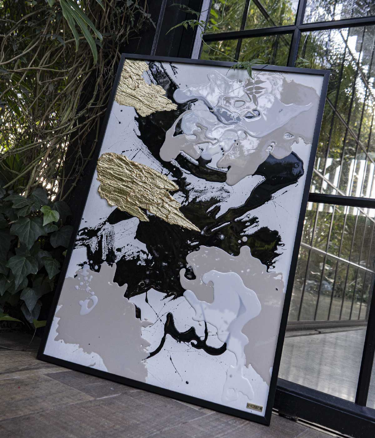 Este cuadro de alta calidad está hecho de resina con toques en laminilla de oro 24k, lo que lo hace duradero y resistente al paso del tiempo. Su diseño en tonos neutros le da un estilo elegante y versátil que se adaptará a cualquier espacio. Una adición perfecta para tu hogar u oficina.