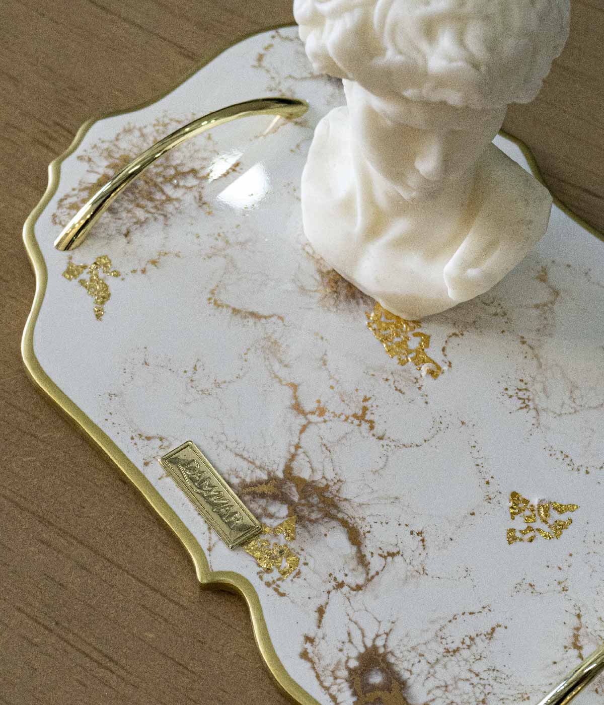 Hermosa bandeja, elegante y versátil que te puede servir como porta calientes, bandeja para servir, centro de mesa, estación de café o condimentos en tu cocina, base para tus perfumes y mucho más!