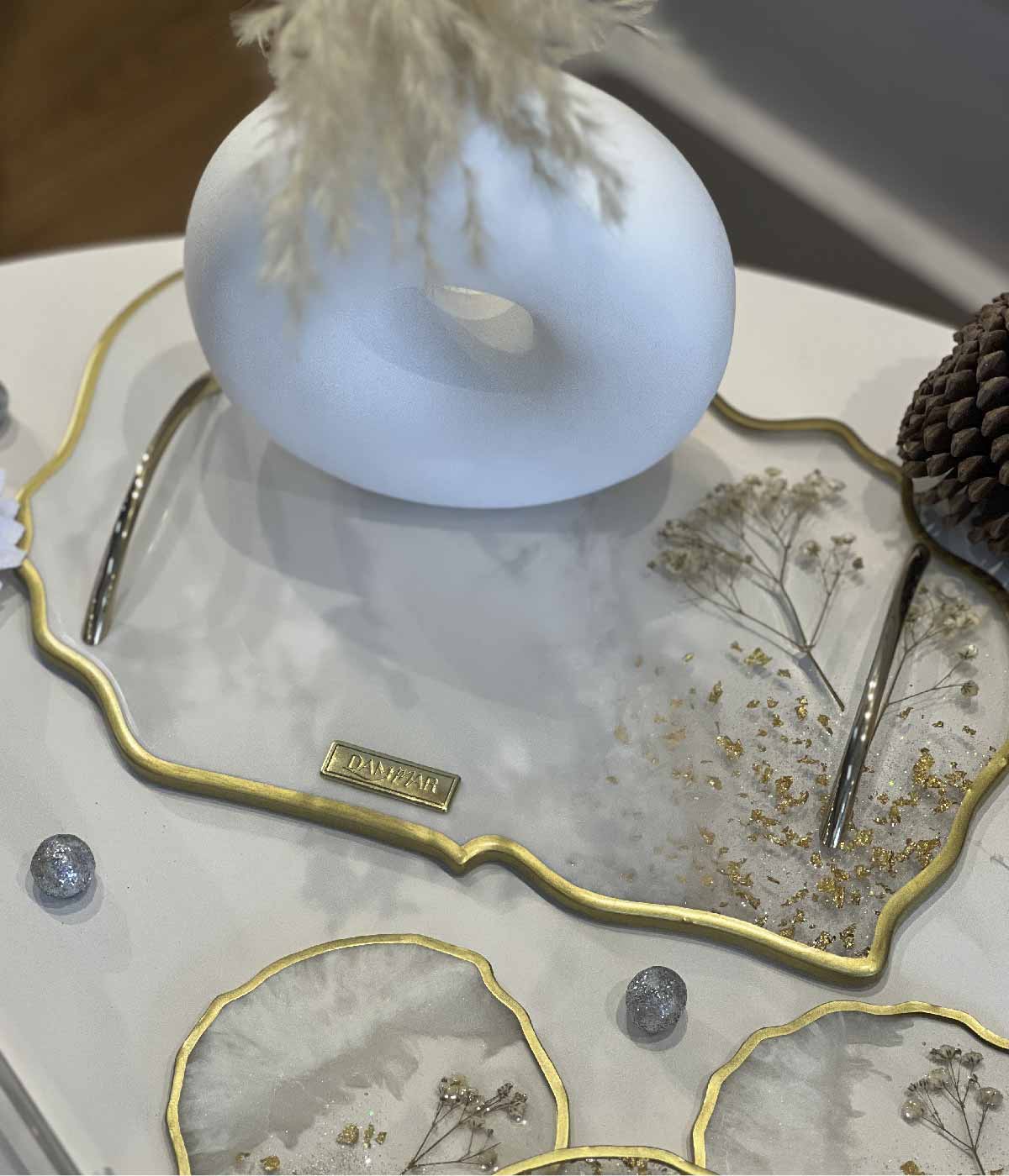 Nuestra bandeja está hecha de resina transparente de alta calidad y presenta una hermosa flor natural incrustada en su superficie. La resina permite que la flor se preserve de manera duradera, manteniendo su belleza y color original. Esta bandeja es una combinación única de artesanía y naturaleza, perfecta para decorar y agregar un toque de elegancia a cualquier espacio. Ideal para servir aperitivos, joyería u otros objetos pequeños, esta bandeja en resina y flor natural es una pieza única y llamativa.