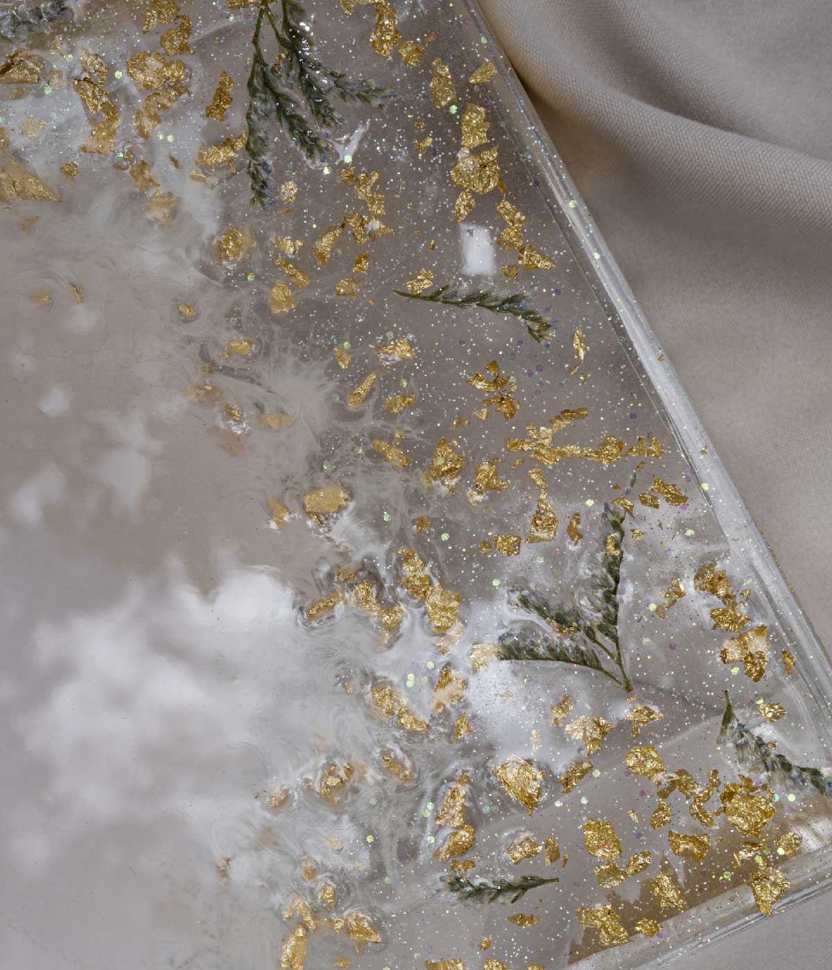 Nácar, Transparente, Dorado, Flor natural incrustada