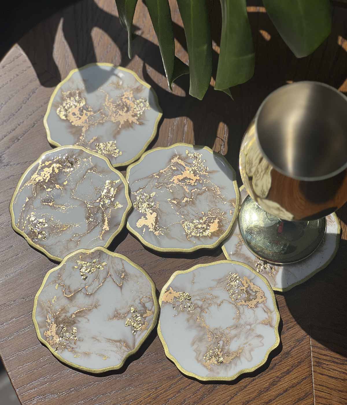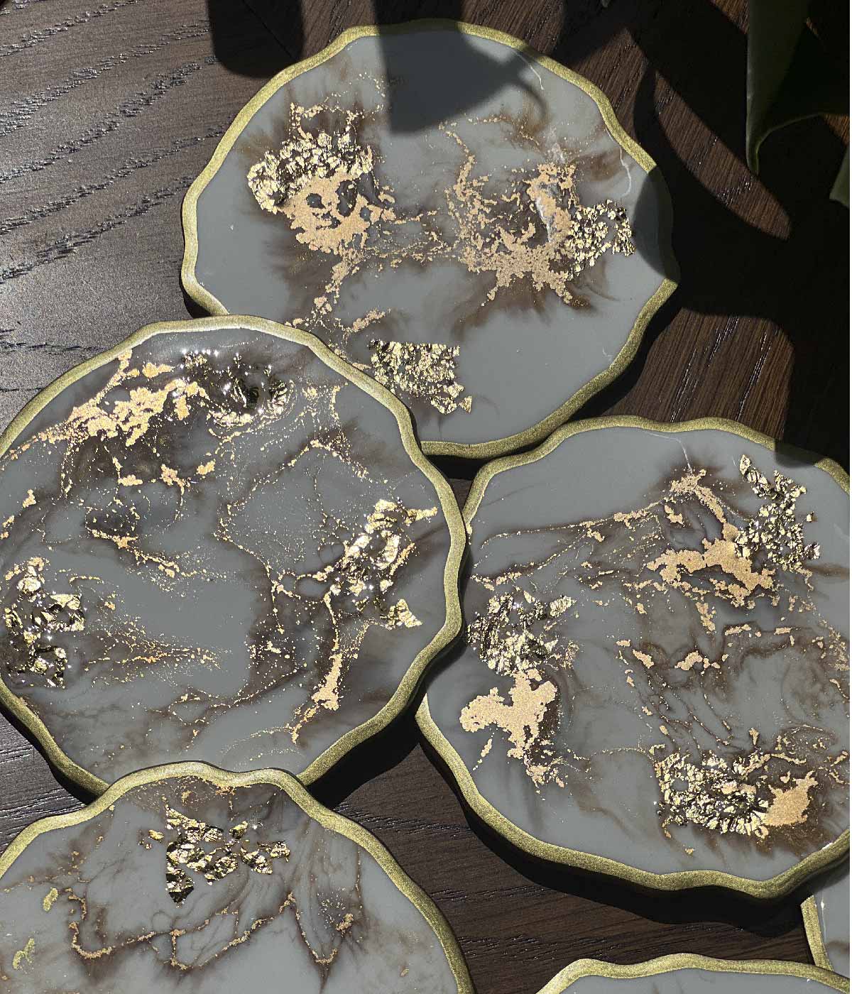 ✨ Elegancia y resistencia en tu mesa ✨ Hermosos portavasos marmolados con toques de laminilla perfectos para proteger tus mesas y decorar tus ambientes Personalízalo en los colores que tu elijas Hecho a mano