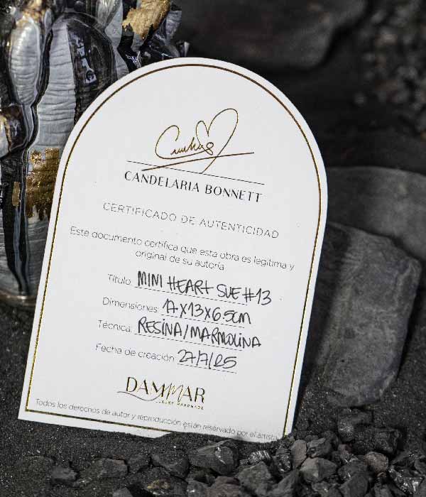 Cada corazón llega en una caja de lujo y acompañado de un par de memorias y un manifiesto: un registro íntimo del instante en el que estas piezas fueron creadas, de lo que se sintió, y de la energía que quedó sellada en cada una.
