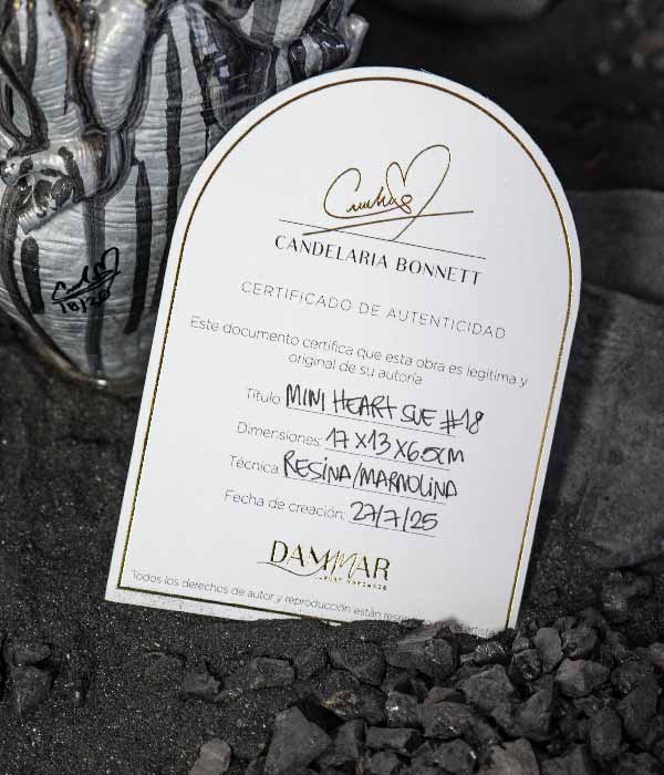 Cada corazón llega en una caja de lujo y acompañado de un par de memorias y un manifiesto: un registro íntimo del instante en el que estas piezas fueron creadas, de lo que se sintió, y de la energía que quedó sellada en cada una.
