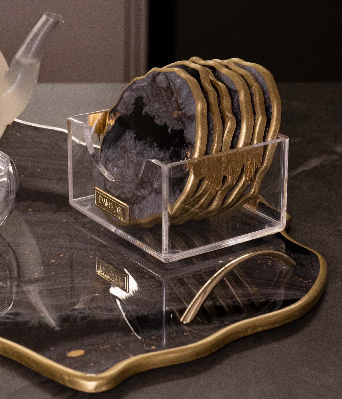 Esta exclusiva bandeja destaca por su sofisticado diseño en tonos cafés y dorados, perfecta para agregar un toque de lujo a cualquier espacio. Su versatilidad permite utilizarla tanto para servir como para decorar o colocar tus pertenencias. Los elegantes detalles dorados en los bordes y asas resaltan su carácter atemporal y refinado, convirtiéndola en una pieza central en cualquier mesa o ambiente.