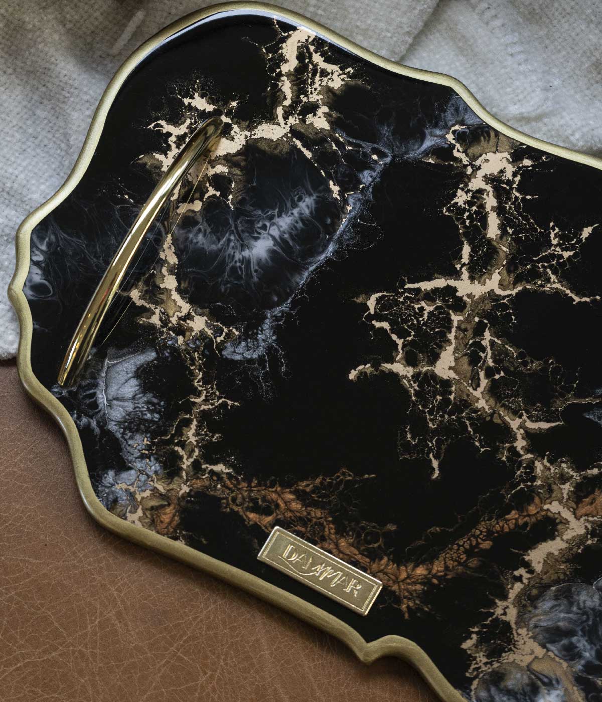 Negro, dorado, blanco, plateado y bronce en diseño marmolado.