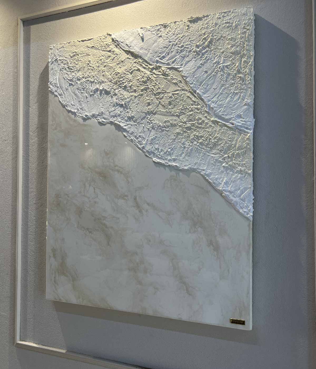 Nuestra colección viene con texturas diferentes y muy minimalistas, tiene una  combinación de resina, yeso y textil en nuestro cuadro que crea una pieza visualmente impactante y tridimensional. La resina le brinda brillo y protección, mientras que el yeso y el textil agrega textura y relieve a la obra. Esta combinación de materiales permite al artista explorar diferentes técnicas y estilos, creando una pieza única y original.