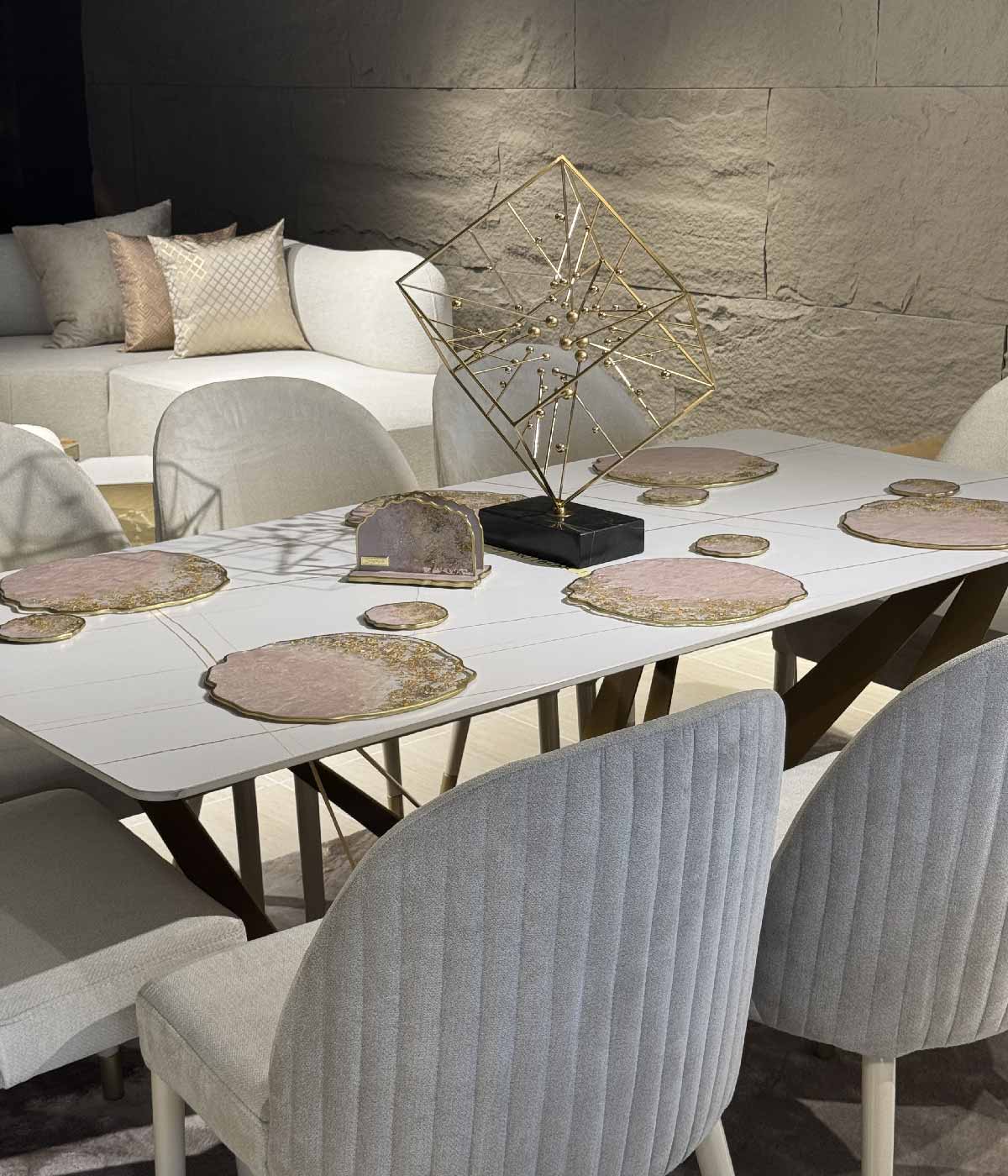 Nuestro set de mesa en resina y flor natural es una elección perfecta si deseas tener un ambiente elegante y natural al mismo tiempo. Combina la belleza de las flores con la durabilidad y facilidad de mantenimiento de la resina, creando así un conjunto de individuales único y encantador.