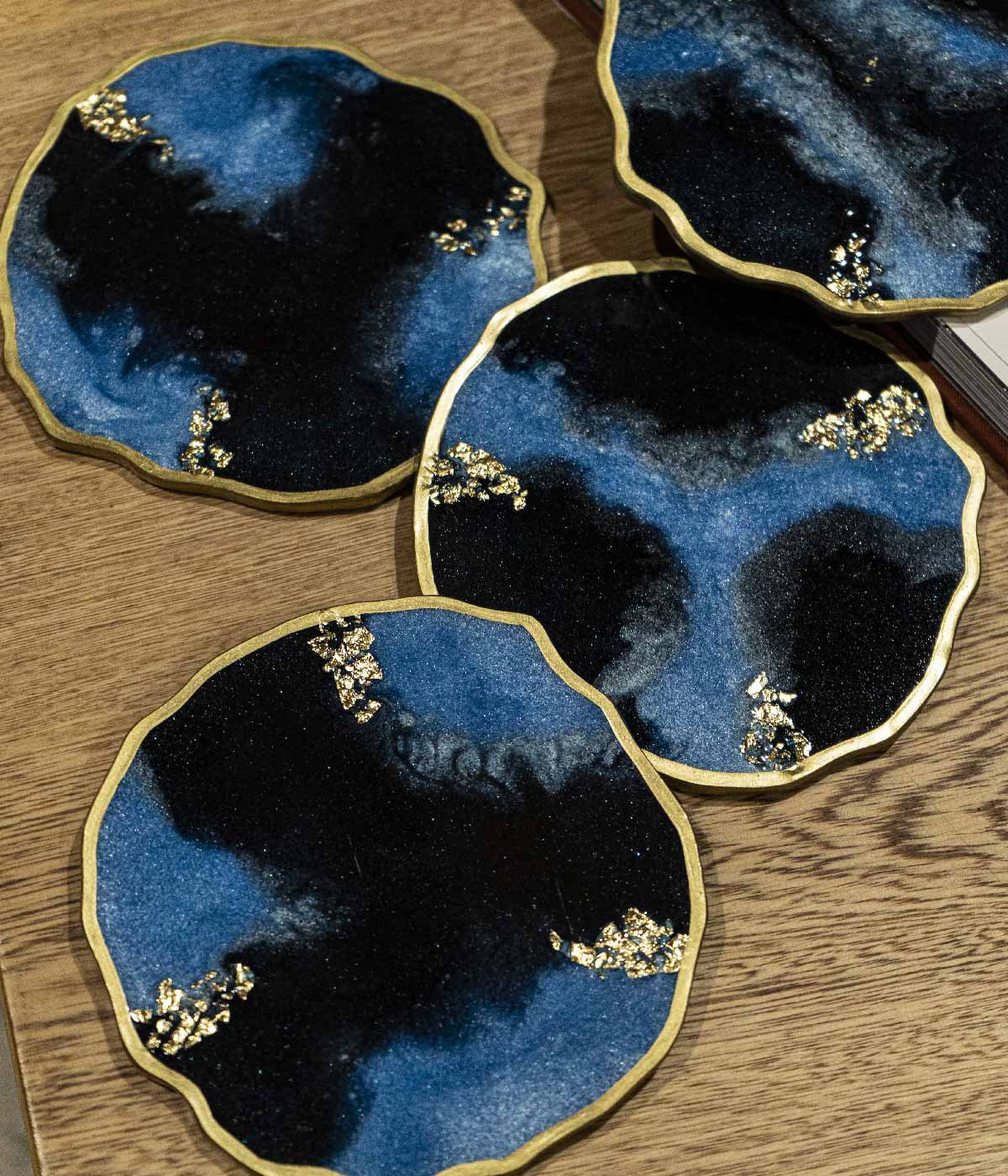 ✨ Elegancia y resistencia en tu mesa ✨ Hermosos portavasos perfectos para proteger tus mesas y superficies y darle un toque único a tu hogar Material: 100% Resina y laminilla  Borde: Pintura  Hecho a mano