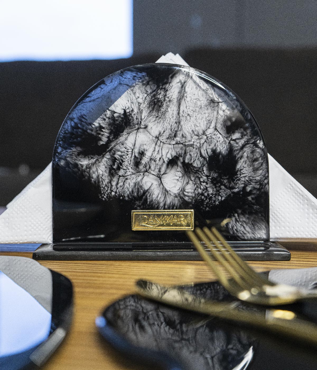 ✨ Elegancia y resistencia en tu mesa ✨ Hermoso servilletero con elegante diseño minimalista en forma ovalada y definida en color negro con transparencia Material: Resina Hecho a mano