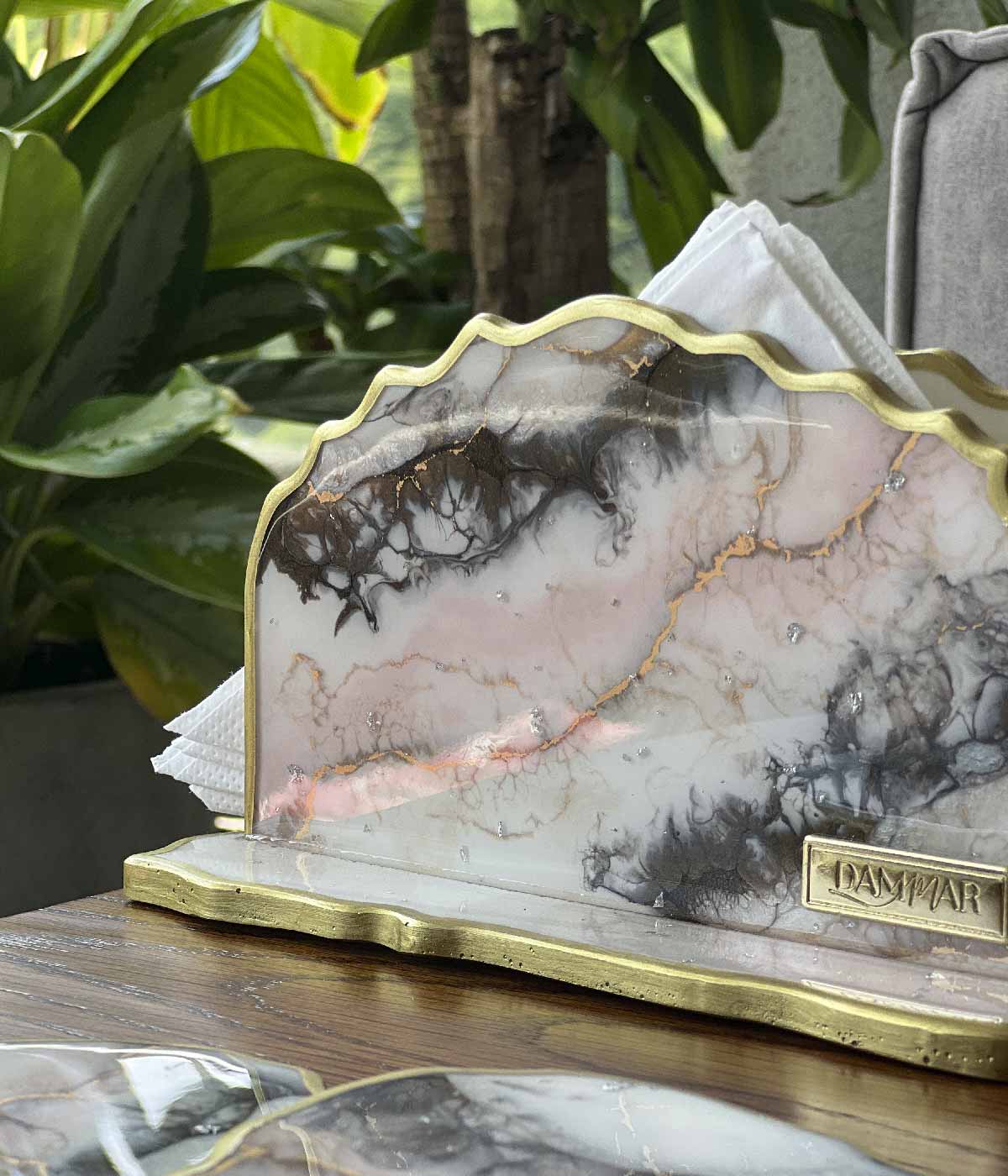 Realza tu mesa con nuestro exclusivo servilletero en resina, una fusión perfecta entre funcionalidad y estilo. Perfecto para el hogar o restaurantes. Cada servilletero es cuidadosamente elaborado, creando un acabado brillante y una apariencia única en cada pieza. Mantén tus servilletas organizadas de manera elegante, mientras añades un toque de arte a tus comidas. Nuestro servilletero en resina es más que un simple accesorio de mesa, es una expresión de buen gusto que transformará tus momentos en la cocina en experiencias visuales memorables